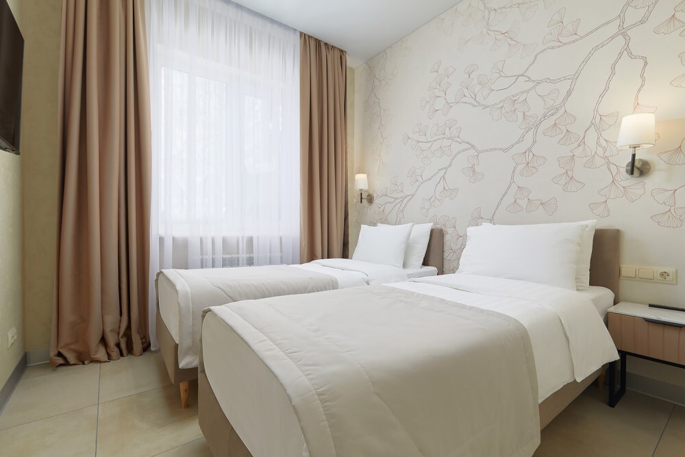 Номер площадью 12 кв.м., кровать-трансформер (двуспальная либо две односпальные кровати).