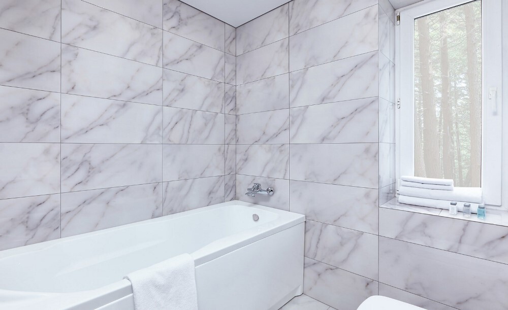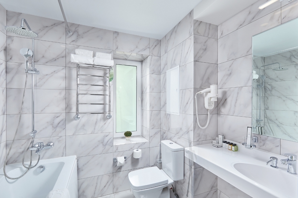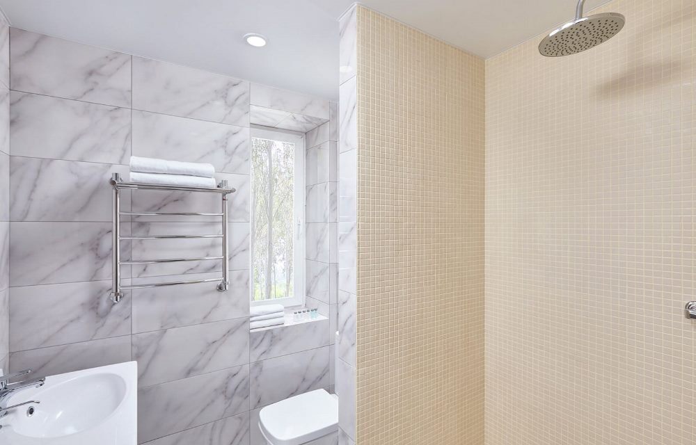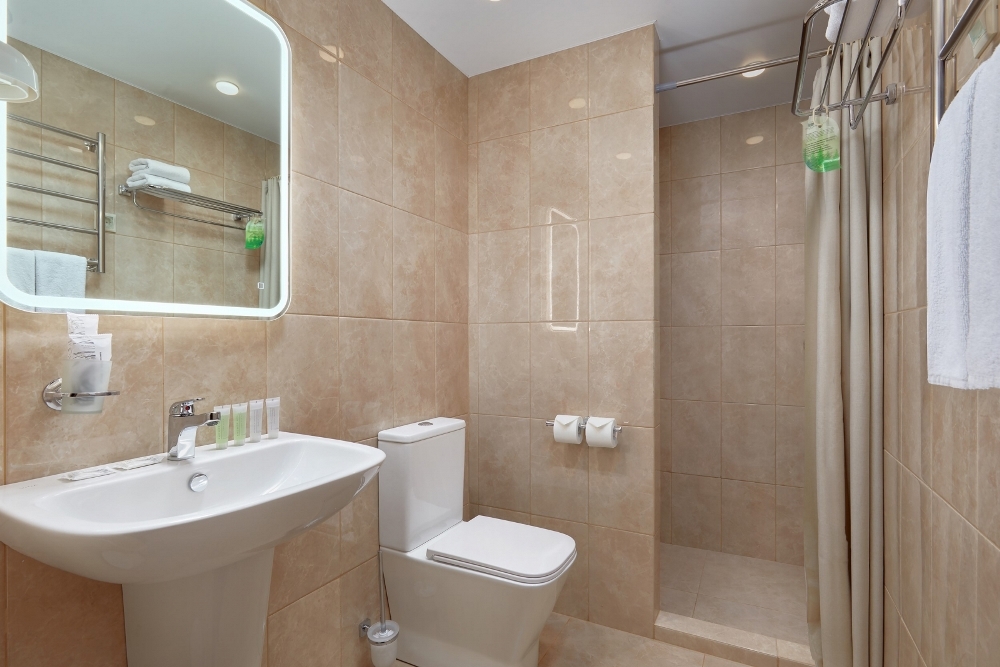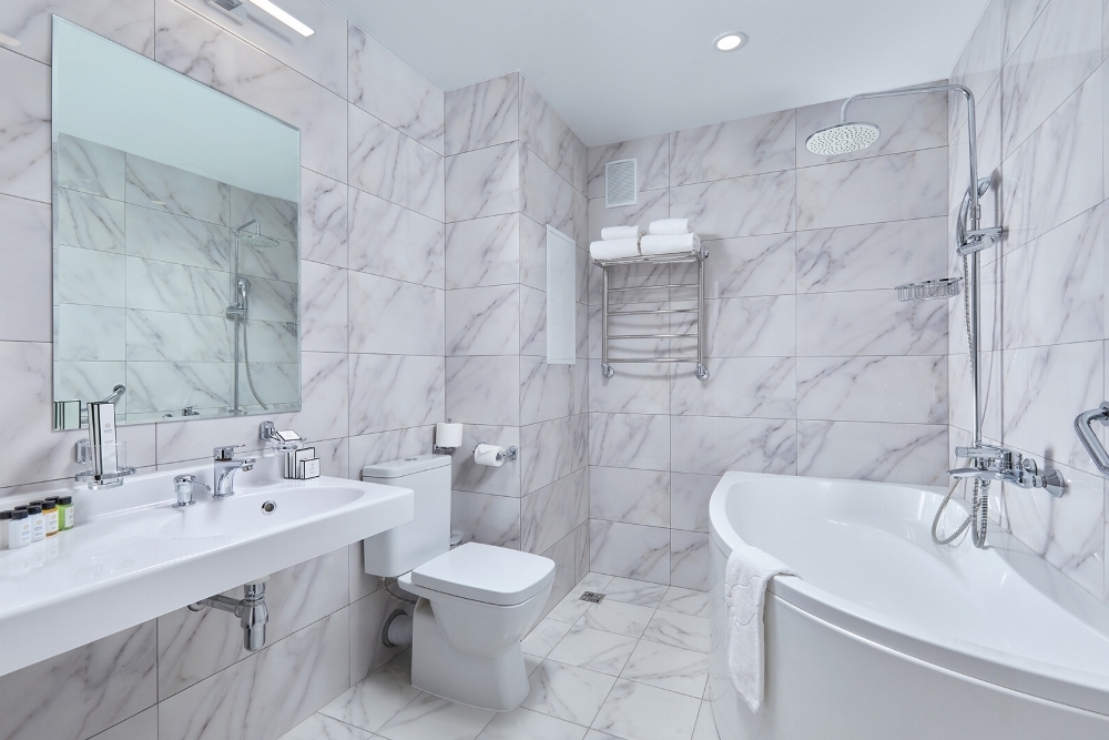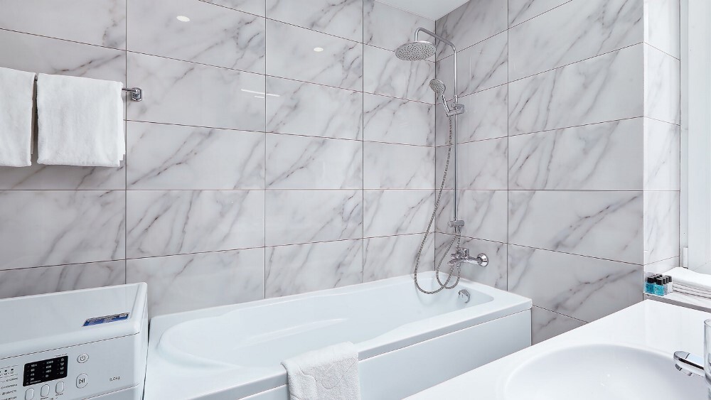 Напольное покрытие: керамогранит, с функцией тёплого пола.